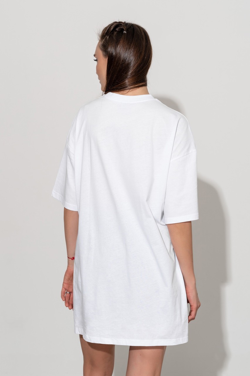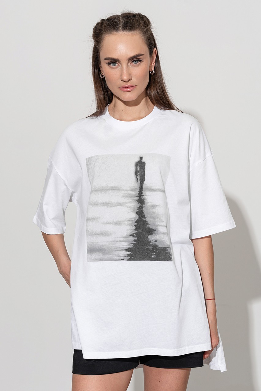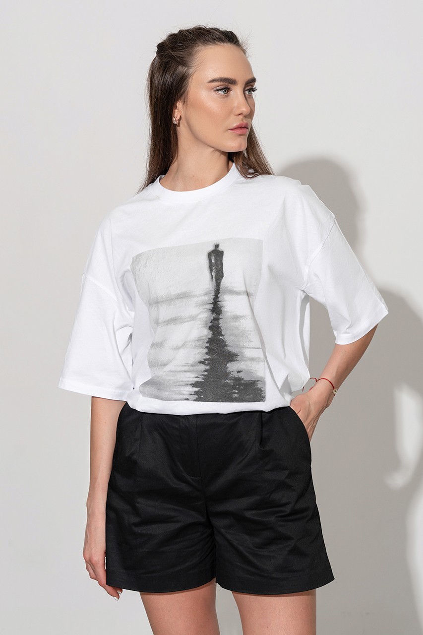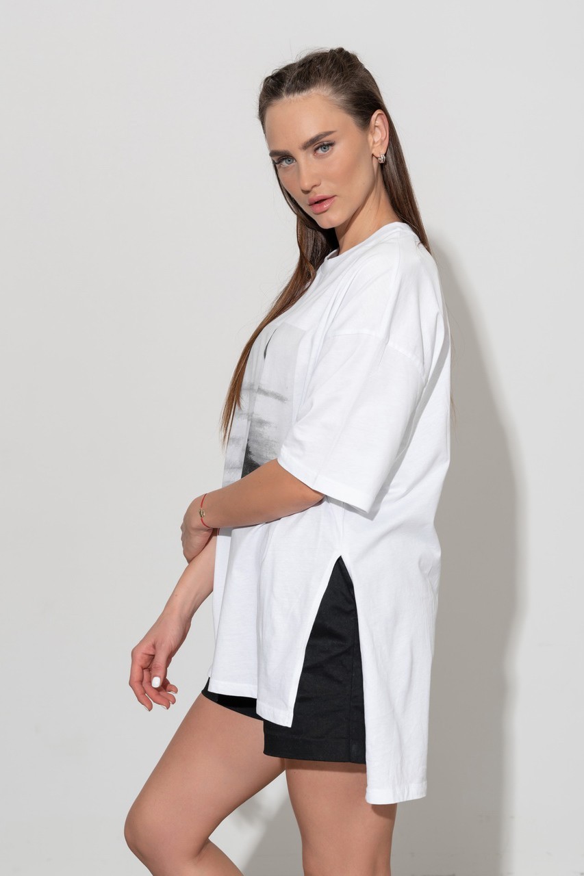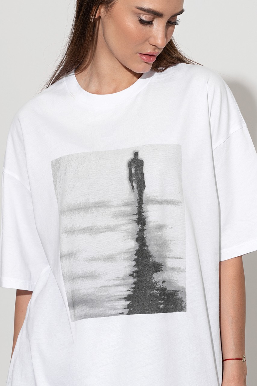 Базовая футболка кроя oversize с принтом. Выполнена из плотного мягкого хлопкового полотна премиального качества (100% органический состав). Свободная, удлиненная и ассиметричная по низу модель подойдет под любой тип фигуры.