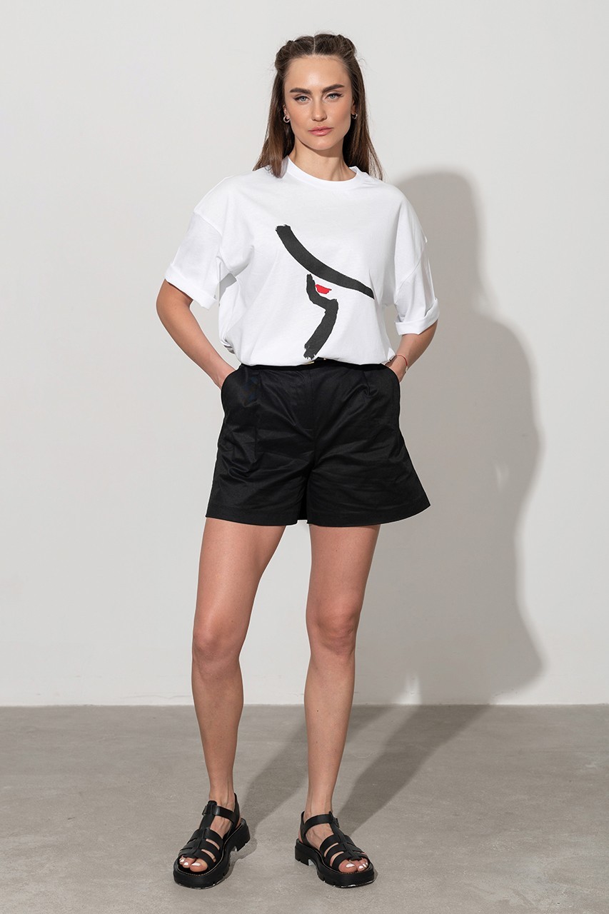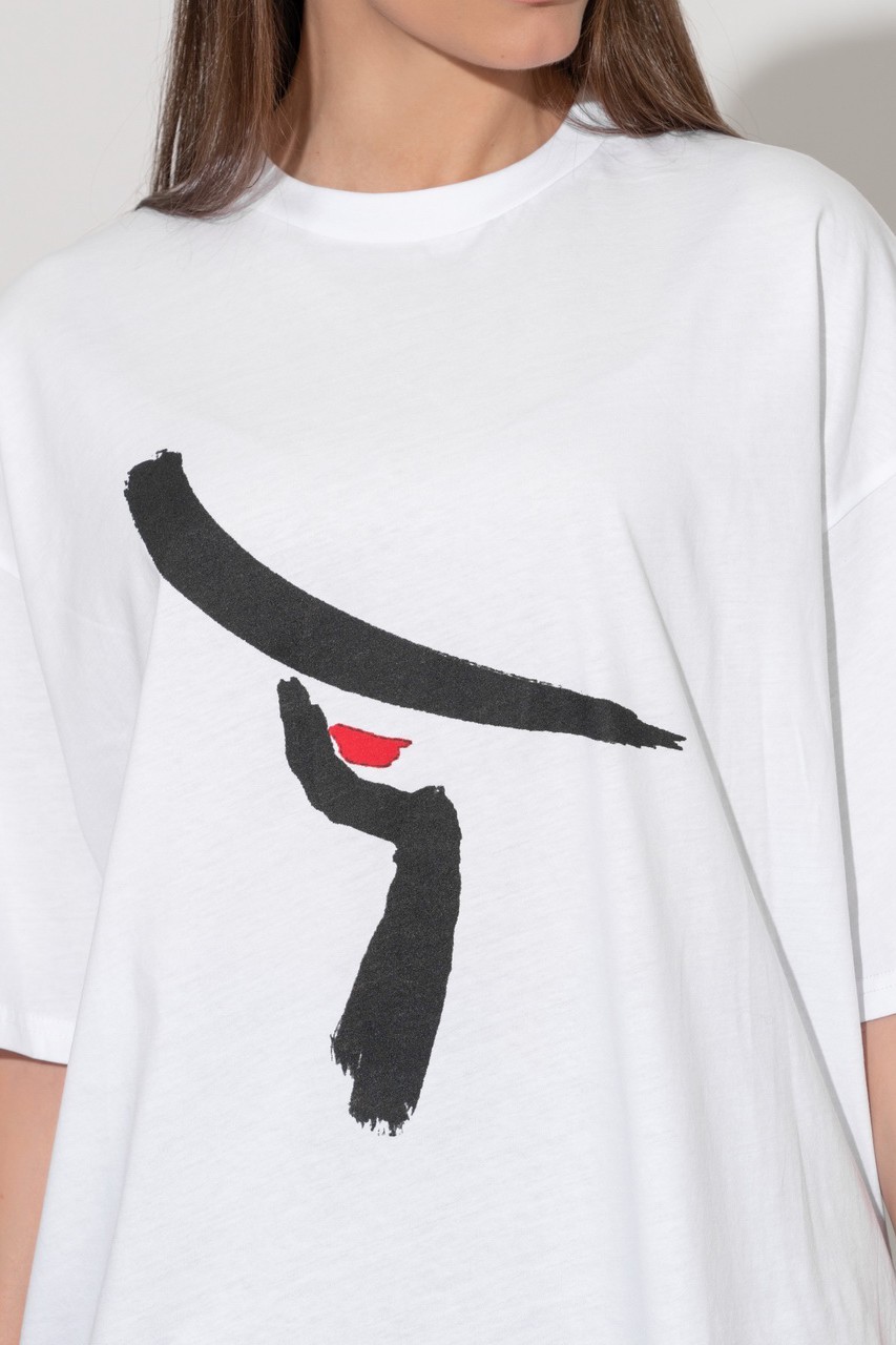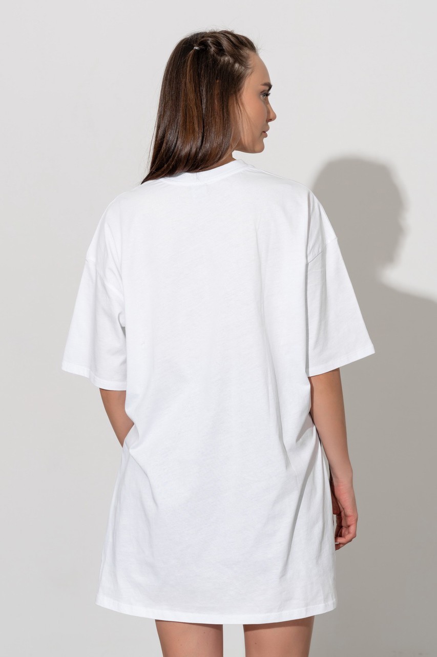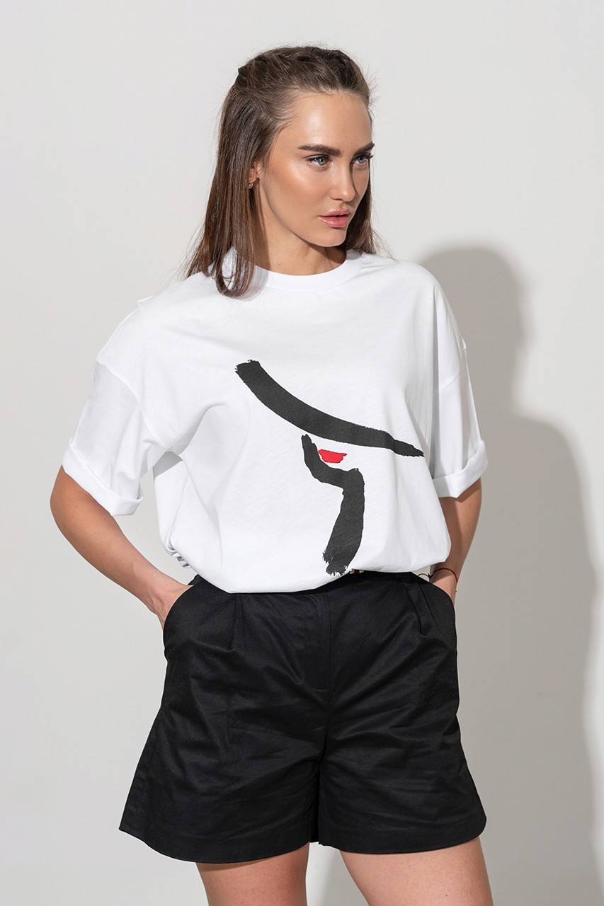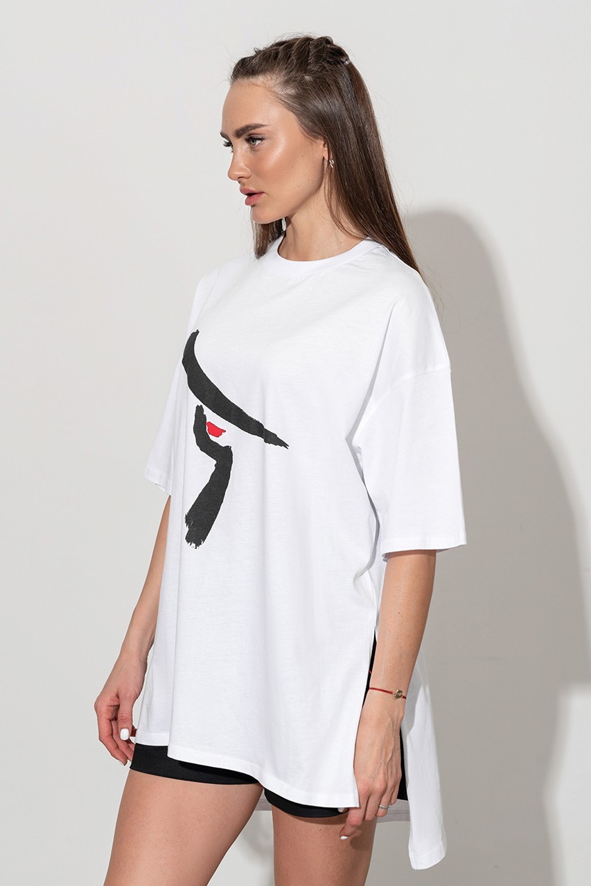 Базовая футболка кроя oversize с принтом. Выполнена из плотного мягкого хлопкового полотна премиального качества (100% органический состав). Свободная, удлиненная и ассиметричная по низу модель подойдет под любой тип фигуры.