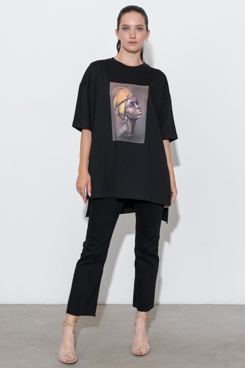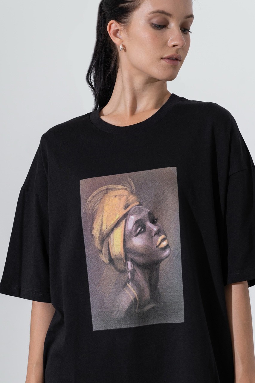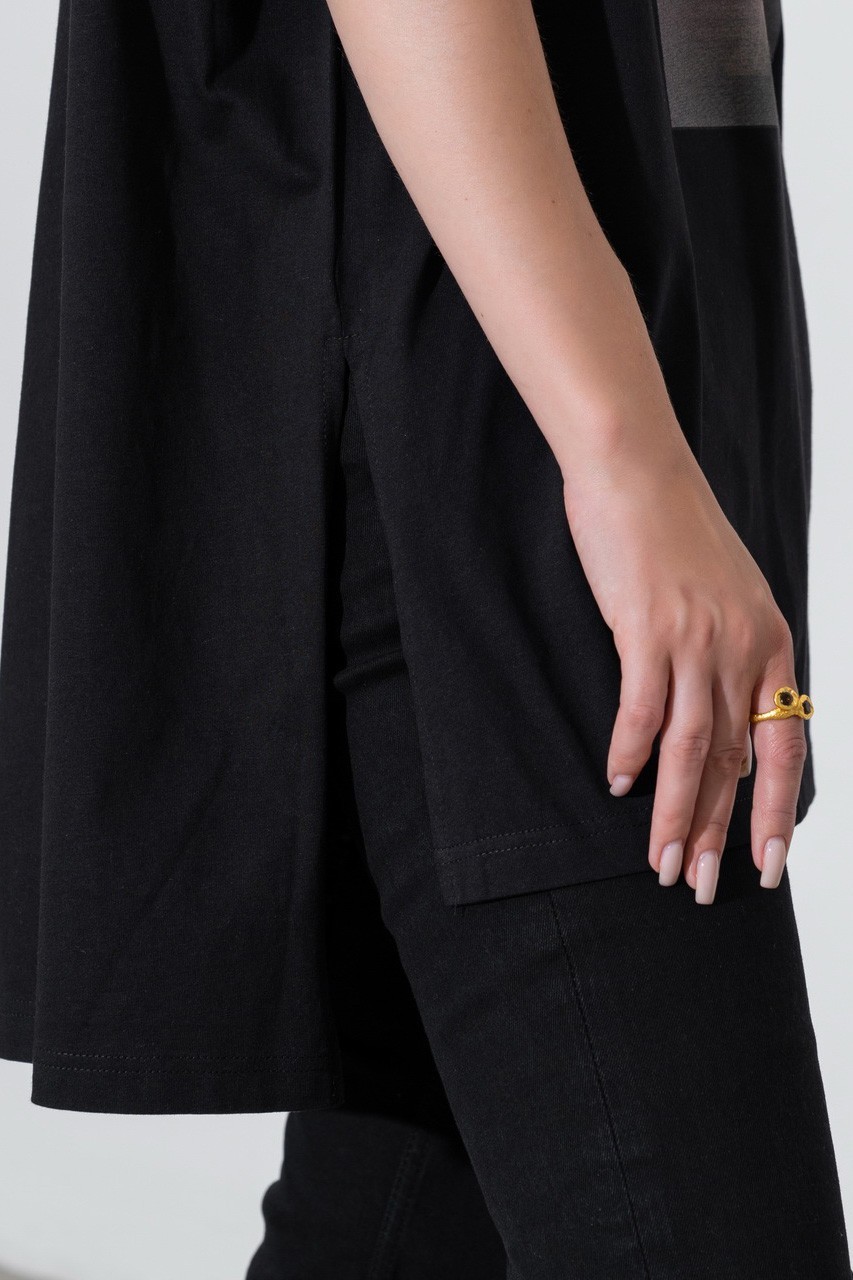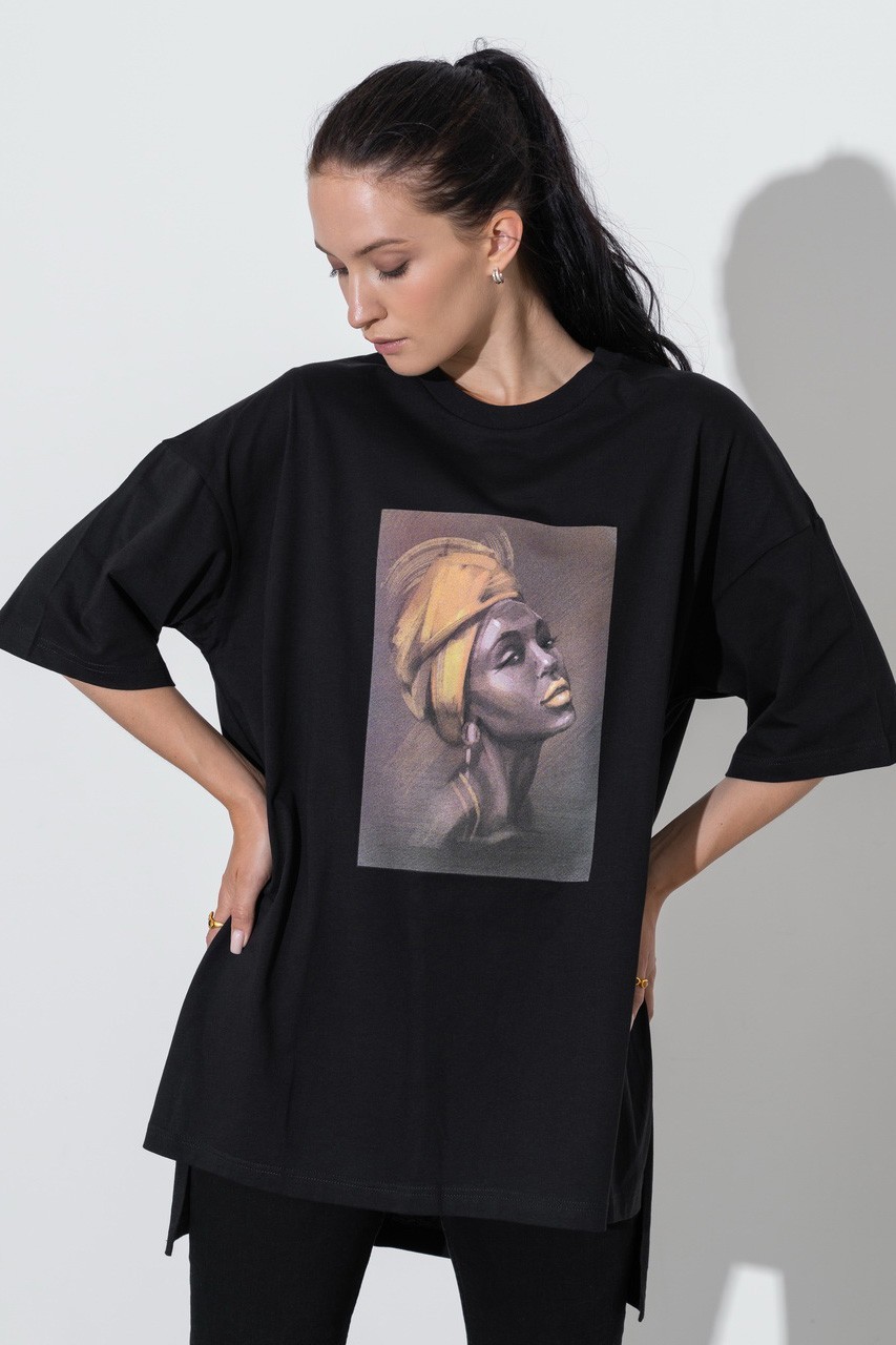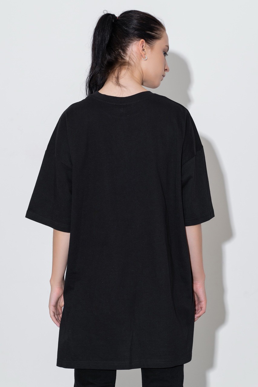 Базовая футболка кроя oversize с принтом. Выполнена из плотного мягкого хлопкового полотна премиального качества (100% органический состав). Свободная, удлиненная и ассиметричная по низу модель подойдет под любой тип фигуры.