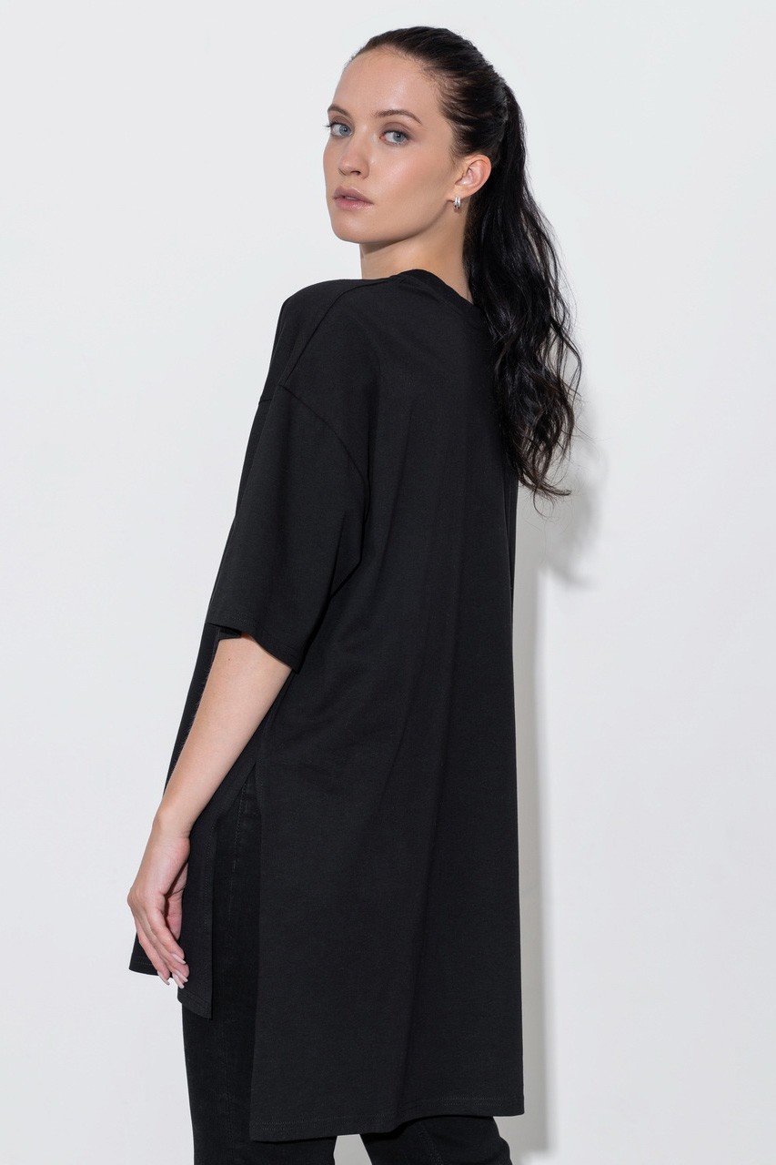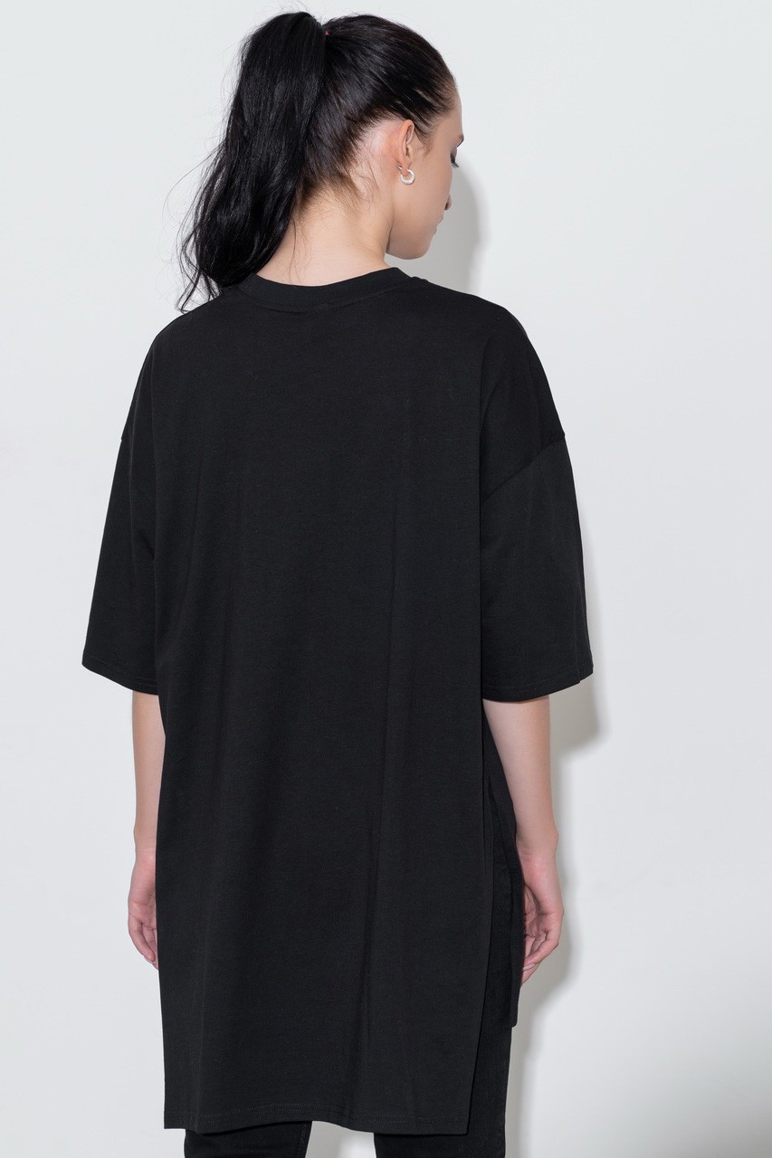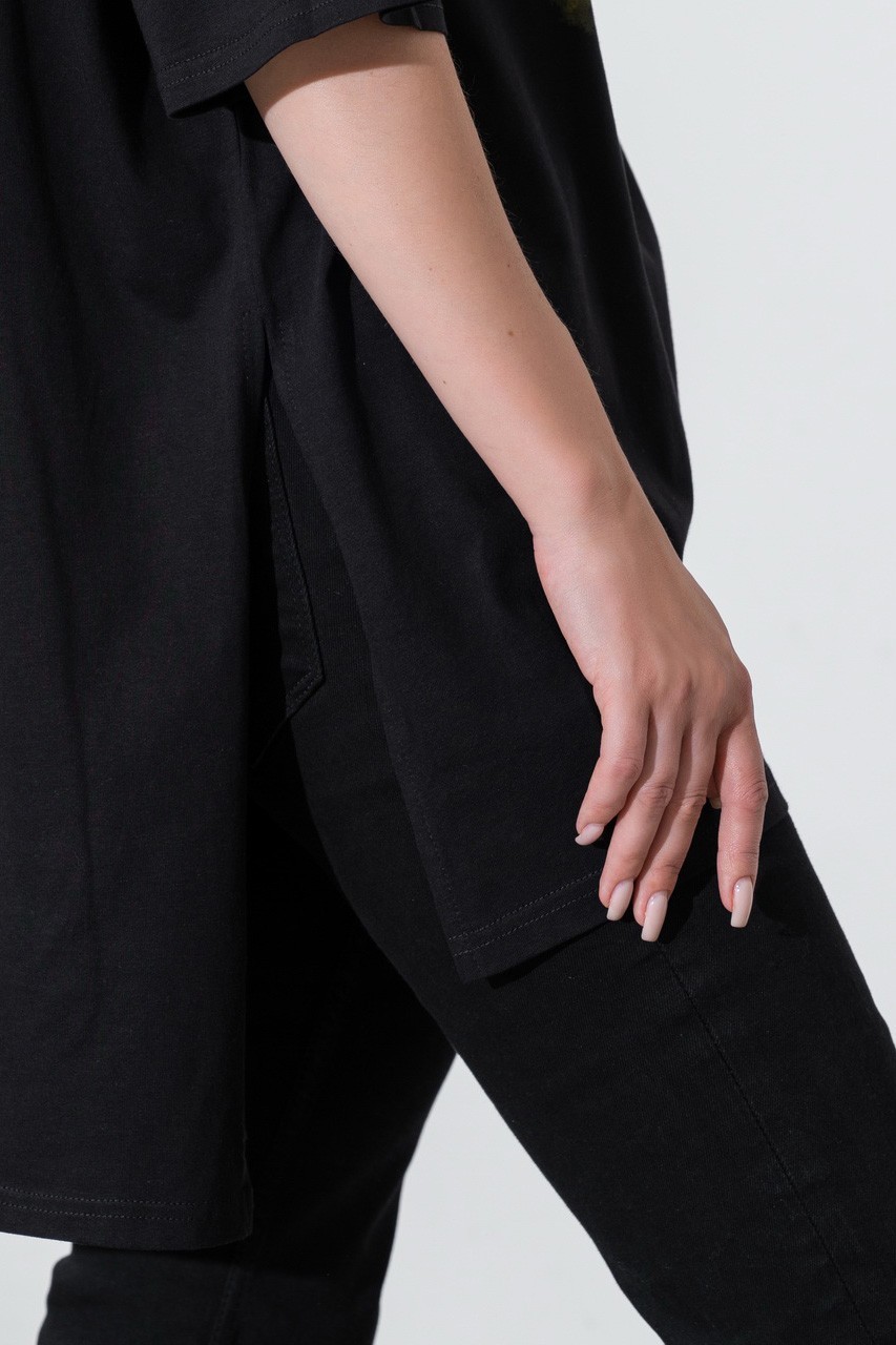 Базовая футболка кроя oversize с принтом. Выполнена из плотного мягкого хлопкового полотна премиального качества (100% органический состав). Свободная, удлиненная и ассиметричная по низу модель подойдет под любой тип фигуры.