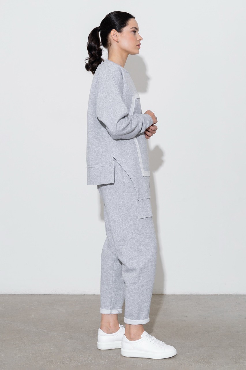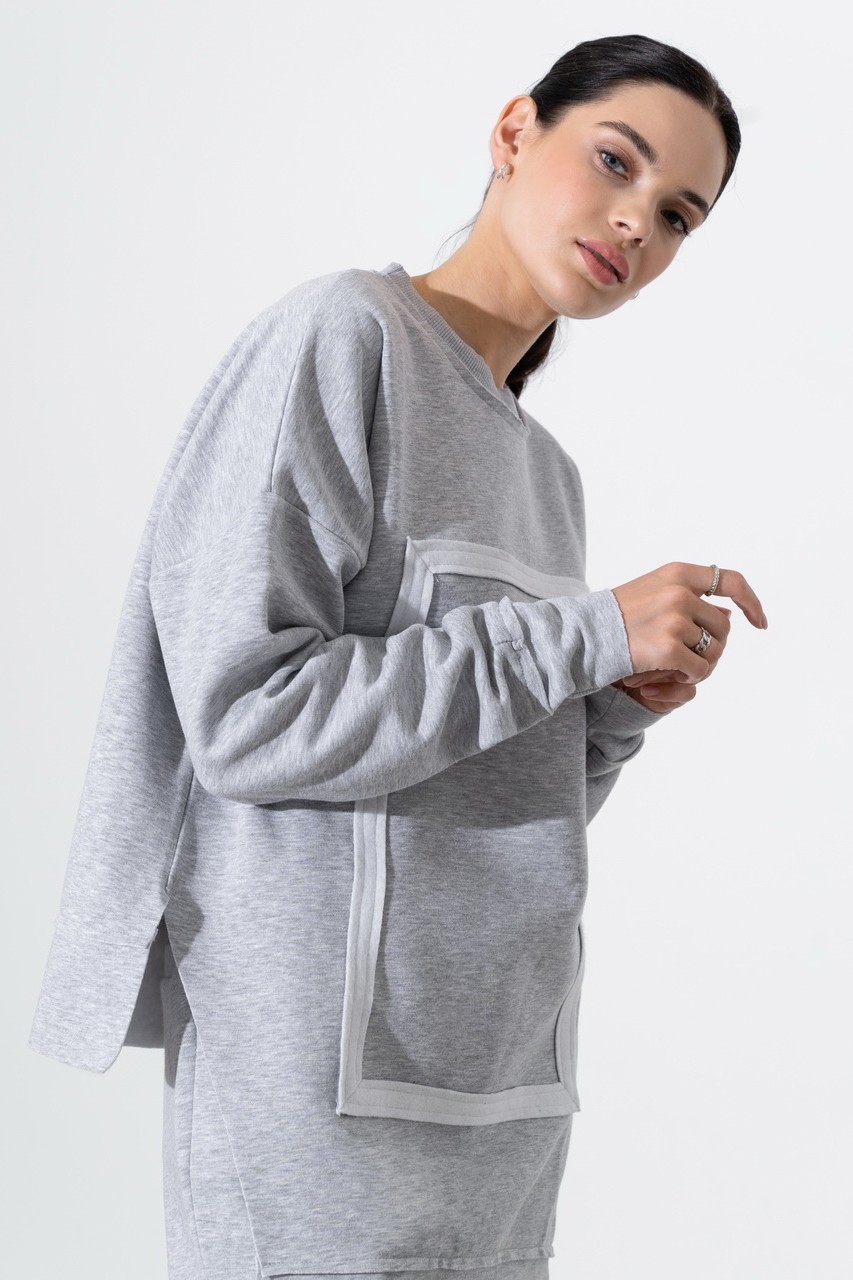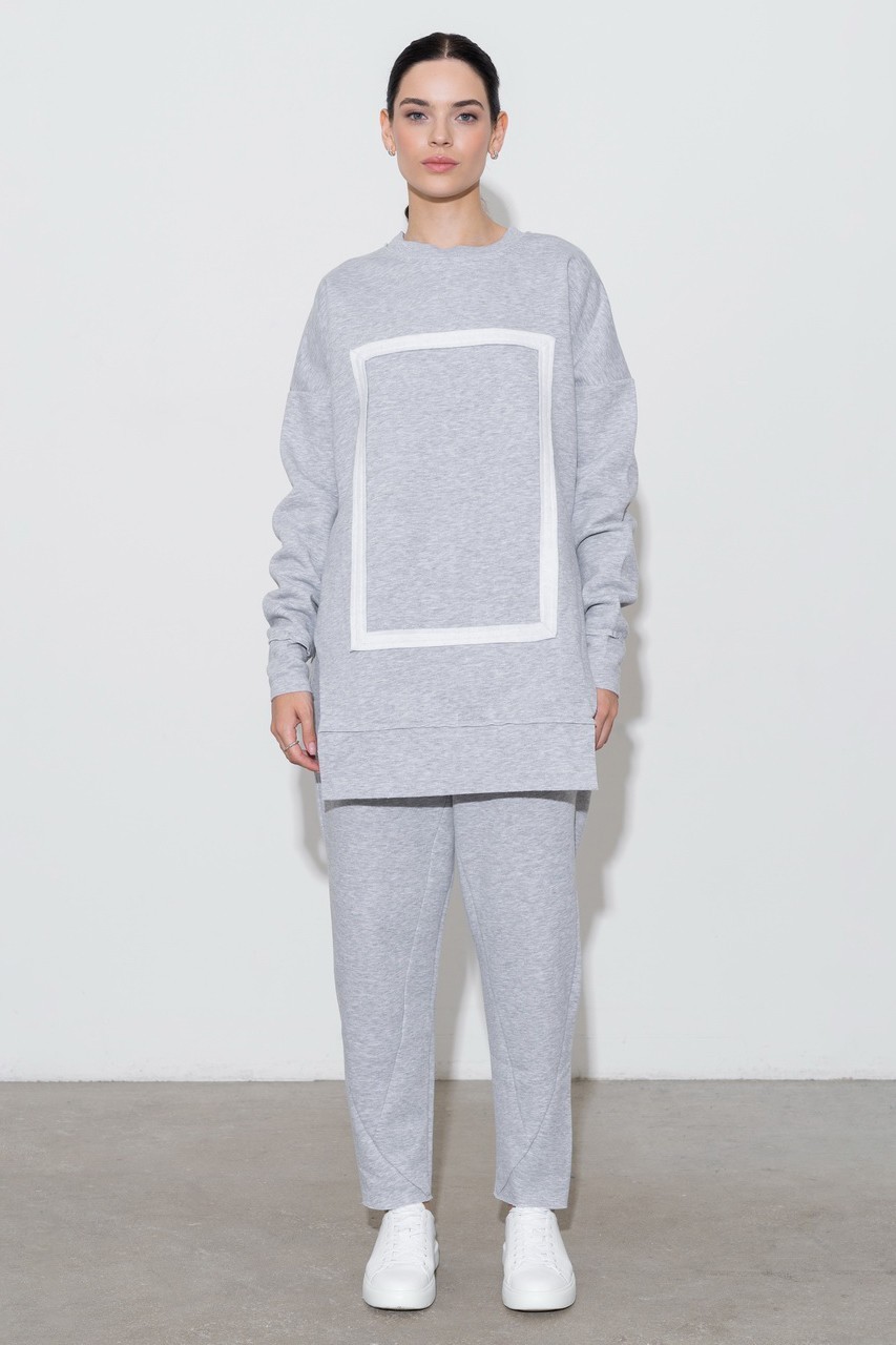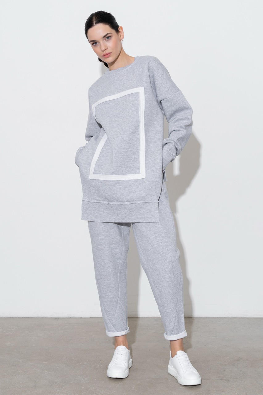 Утепленный костюм oversize Skaro. Нестандартный удлиненный крой свитшота, декоративный элемент, выполненный аппликацией, и ультрамягкий высококачественный материал, сохраняющий тепло.